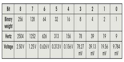 3.該表顯示了刻度2的頻率到電壓的轉(zhuǎn)換。