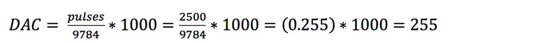 例如,如果在TIMER1中獲得2500個脈沖,則可以通過將讀取的脈沖除以我們先前發(fā)現(xiàn)的常數(shù)9.784來獲得DAC的值: