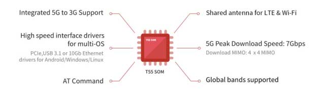 TurboX T55 SOM,基于第二代Qualcomm Snapdragon X55 5G Modem-RF系統(tǒng)