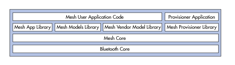 3描繪了BLE Mesh節(jié)點(diǎn)中的軟件層。請(qǐng)注意,Mesh用戶和Provisioner應(yīng)用程序如何位于體系結(jié)構(gòu)的頂部,庫和核心功能的上方,以使它們獨(dú)立于底層BLE Mesh網(wǎng)絡(luò)。還請(qǐng)注意,網(wǎng)格供應(yīng)商模型庫如何使添加專有功能,同時(shí)保持與藍(lán)牙標(biāo)準(zhǔn)的兼容性成為可能。