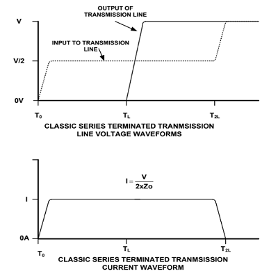串聯(lián)終端的傳輸線  是連接CMOS器件的主要方法  ,在下面的討論中,所有提到的器件都是CMOS器件。CMOS器件實(shí)際上導(dǎo)致了ECL技術(shù)的滅亡,因?yàn)槭褂?/span>ECL,無論采取什么措施,生產(chǎn)線總是會(huì)消耗功率并導(dǎo)致大型機(jī)器出現(xiàn)嚴(yán)重的散熱問題。
