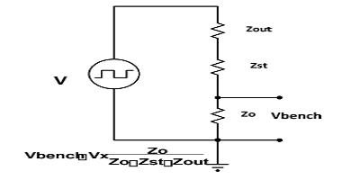分壓器由驅(qū)動(dòng)器輸出阻抗和上部的串聯(lián)端接以及下部的傳輸線阻抗組成。正確選擇串聯(lián)終端后,ZoutZst的組合將與Zo相同。在此示例中,兩者均為50歐姆。